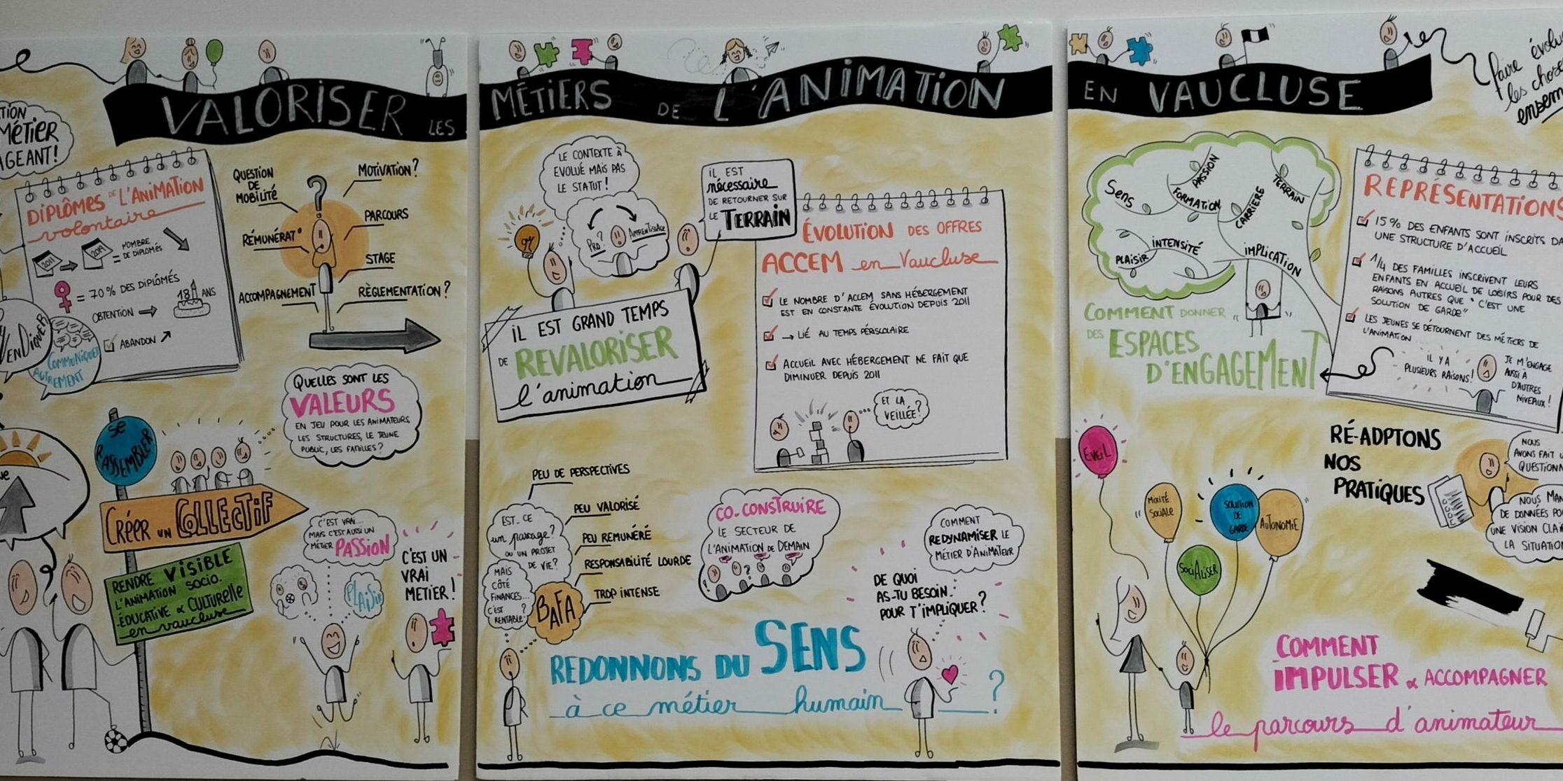 Les structures engagées échangent sur la valorisation du métier au niveau du salaire et des compétences. Une vidéo, donnant à voir ce qu’est le métier d’animateur, est en cours de création et sera diffusée en mars. Côté formation, les animateurs du club jeunes le Transfo impulsent, avec l’association UUS Université Solidaire, la SDJES 84 et le Parc du Luberon, une formation B.A.F.A sur mesure qui correspond aux besoins des structures et adaptés aux jeunes. L’idée est de mettre en place une formation de qualité, encadrée par des professionnels de terrain pour former des animateurs volontaires sur le long terme. Ils ajoutent à la formation la notion de parcours, en suivant le jeune de la formation initiale à son approfondissement.